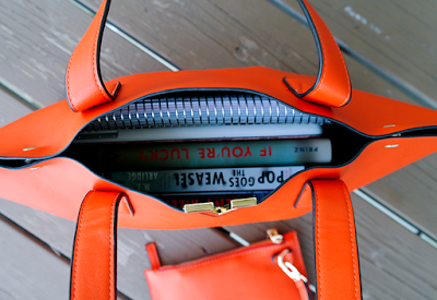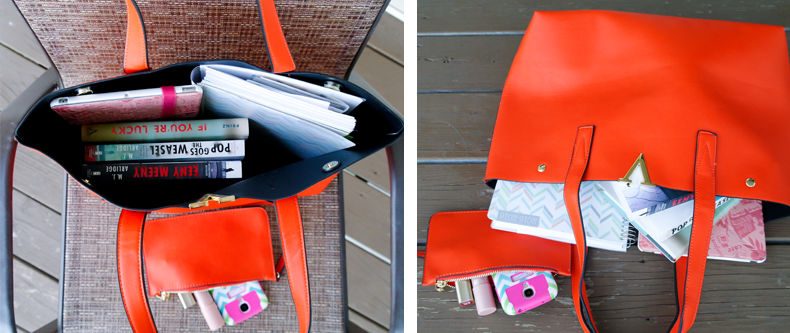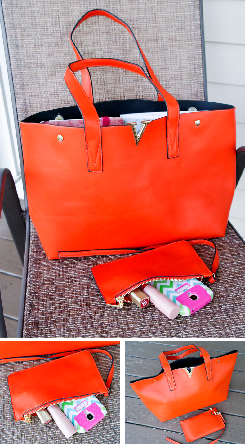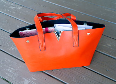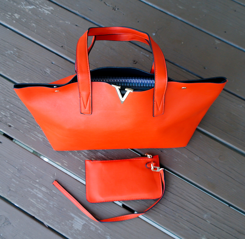 First of all, the bag looks much better in person that it does in the pictures in this listing. It's a gorgeous shade of orange, not the tacky-looking orange-peel shade, but more of a toned down, deep orange color that is almost pumpkin-like. I really like the stylish, minimalistic design. The golden accents go very well with the color of the leather, the seams are perfect in every inch, the bag feels very soft to the touch and flexible, yet sturdy and capable of holding many things.